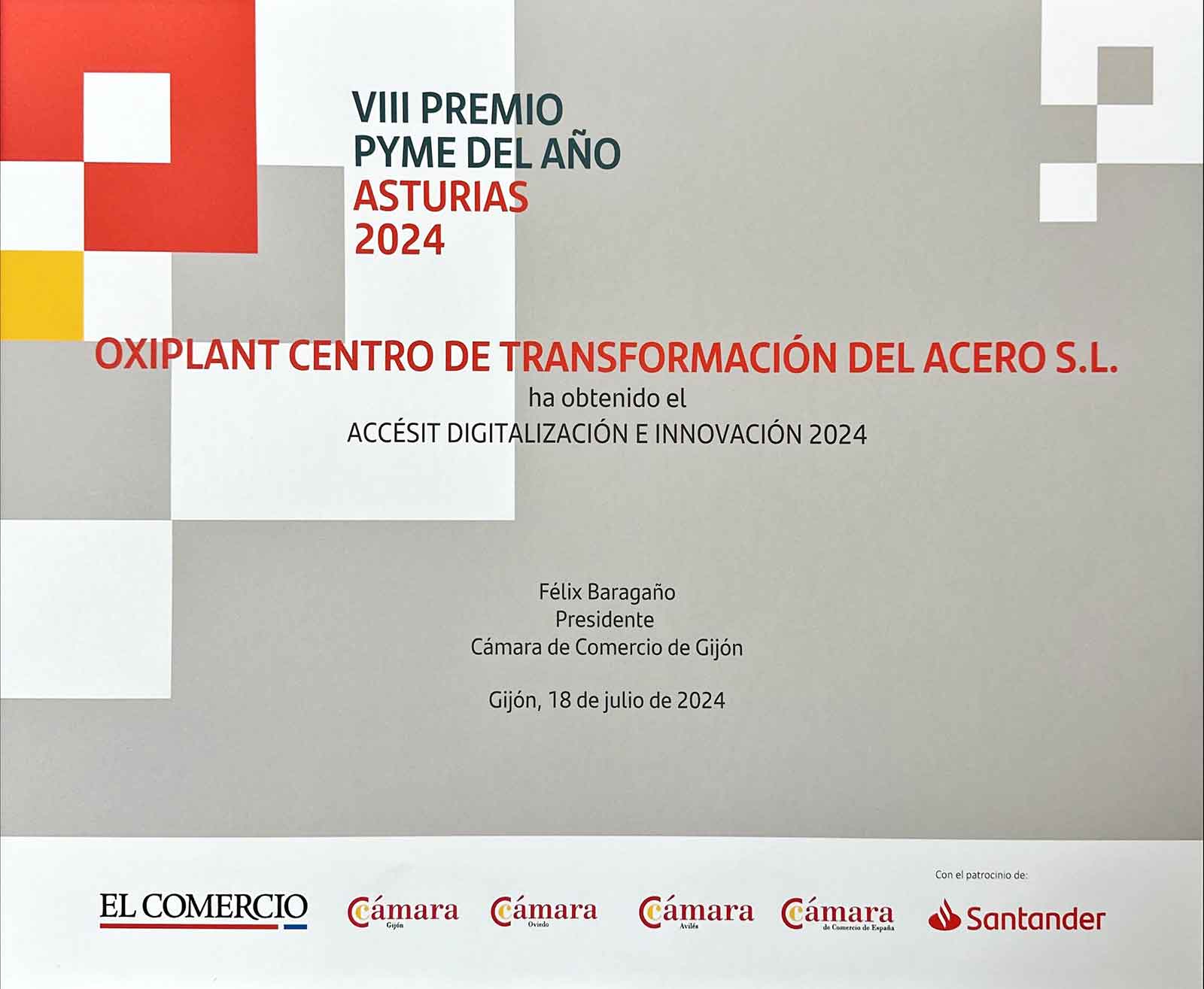 Oxiplant ha recibido el accésit DIGITALIZACIÓN E INNOVACIÓN 2024 del VIII Premio Pyme del Año Asturias 2024.
